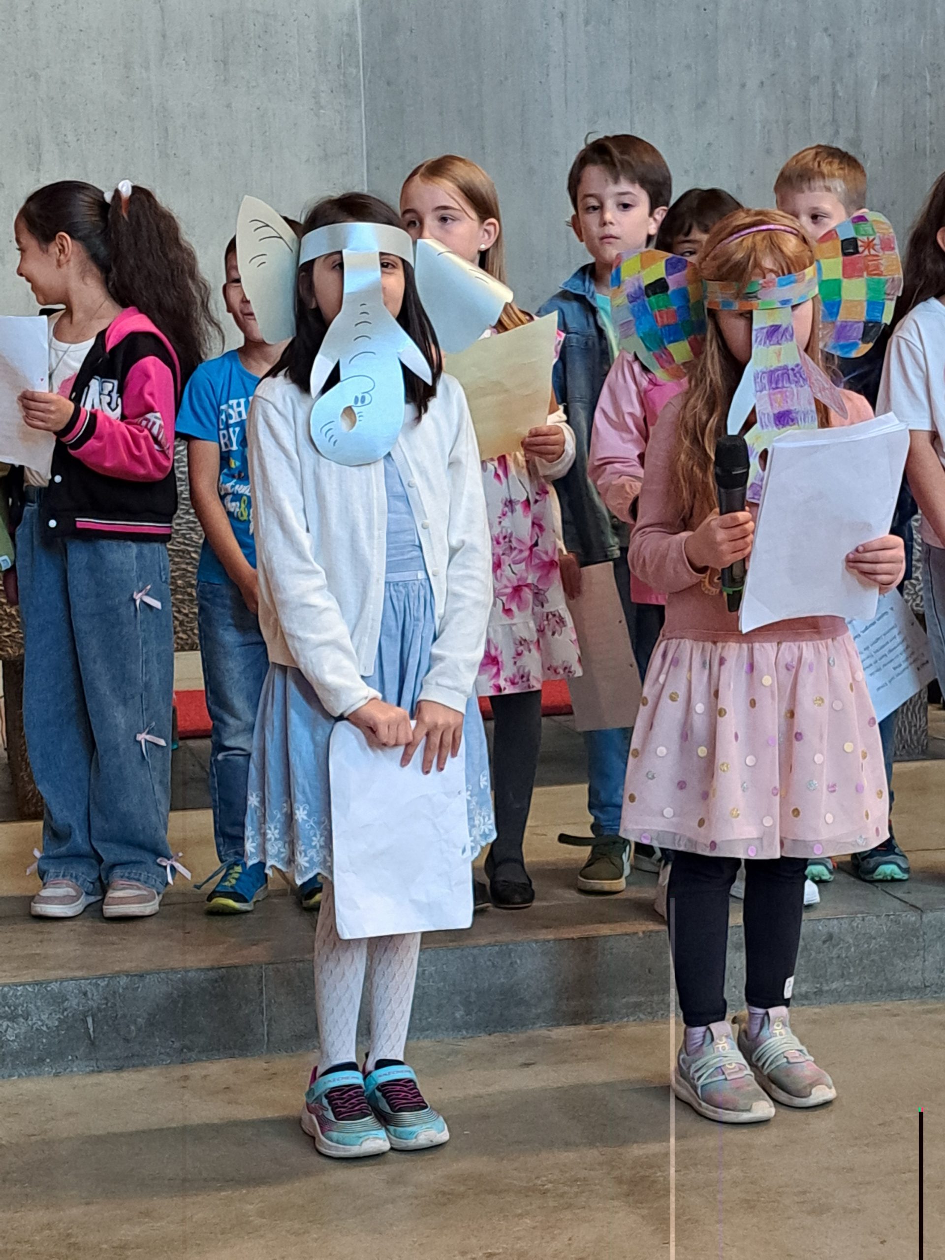 inszenierten Rollenspiel zum Bilderbuch „Elmar, der karierte Elefant“. Elmar, der sich durch